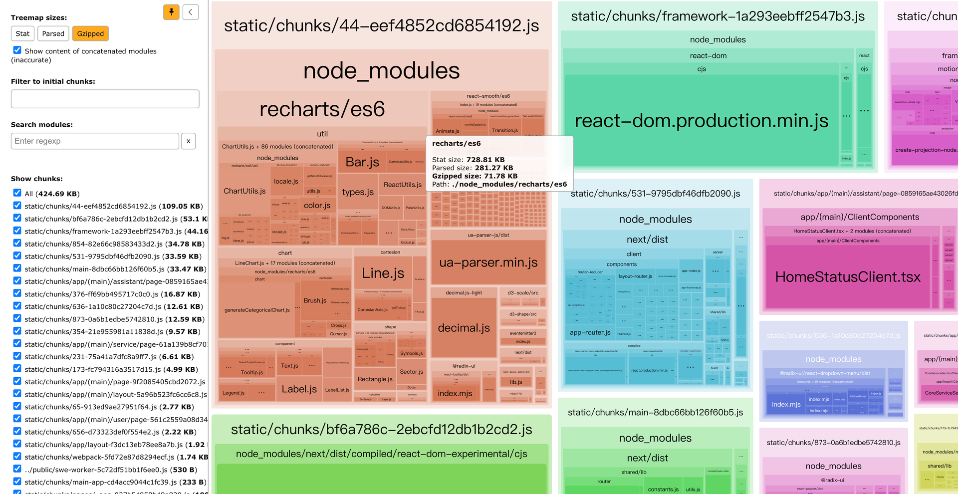 不难看出,recharts 包所占的空间不小,而此包主要用于网络速率显示图表中: