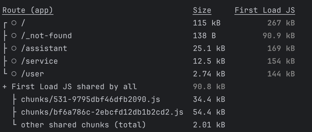 不难看出,在构建结果中,首屏的页面大小(Size)与首次需要加载的 JS 大小(First Load JS)相对于其他的页面突出不少,而页面大小与 First Load JS 与 LCP(Largest Contentful Paint) 的分数息息相关。因此我们先对首屏的 JS 大小进行分析。